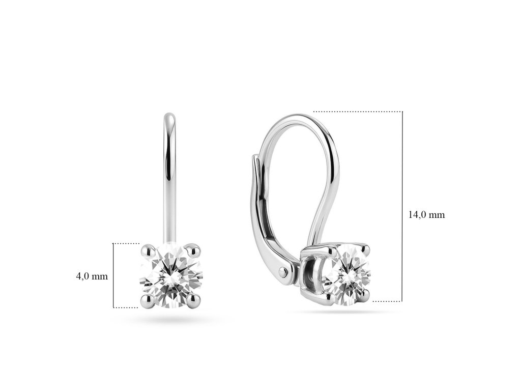 Náušnice EM 32515-40D jsou vyrobeny ze 14k bílého zlata osazeny diamanty v nadčasovém designu. Náušnice jsou zdobeny kulatými diamanty v briliantovém brusu o velikosti 3,50 mm, které jsou jemné, zářivé a velmi elegantní. Skvěle se hodí jako dárek pro různé výjimečné příležitosti.