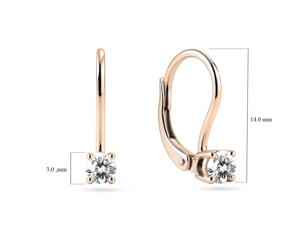 Náušnice EM 32515-30D jsou vyrobeny ze 14k růžového zlata osazeny diamanty v nadčasovém designu. Náušnice jsou zdobeny kulatými diamanty v briliantovém brusu o velikosti 3,00 mm, které jsou jemné, zářivé a velmi elegantní. Skvěle se hodí jako dárek pro různé výjimečné příležitosti.