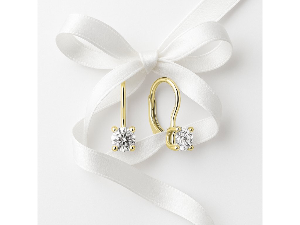 Náušnice EM 32515-30D jsou vyrobeny ze 14k žlutého zlata osazeny diamanty v nadčasovém designu. Náušnice jsou zdobeny kulatými diamanty v briliantovém brusu o velikosti 3,00 mm, které jsou jemné, zářivé a velmi elegantní. Skvěle se hodí jako dárek pro různé výjimečné příležitosti.
