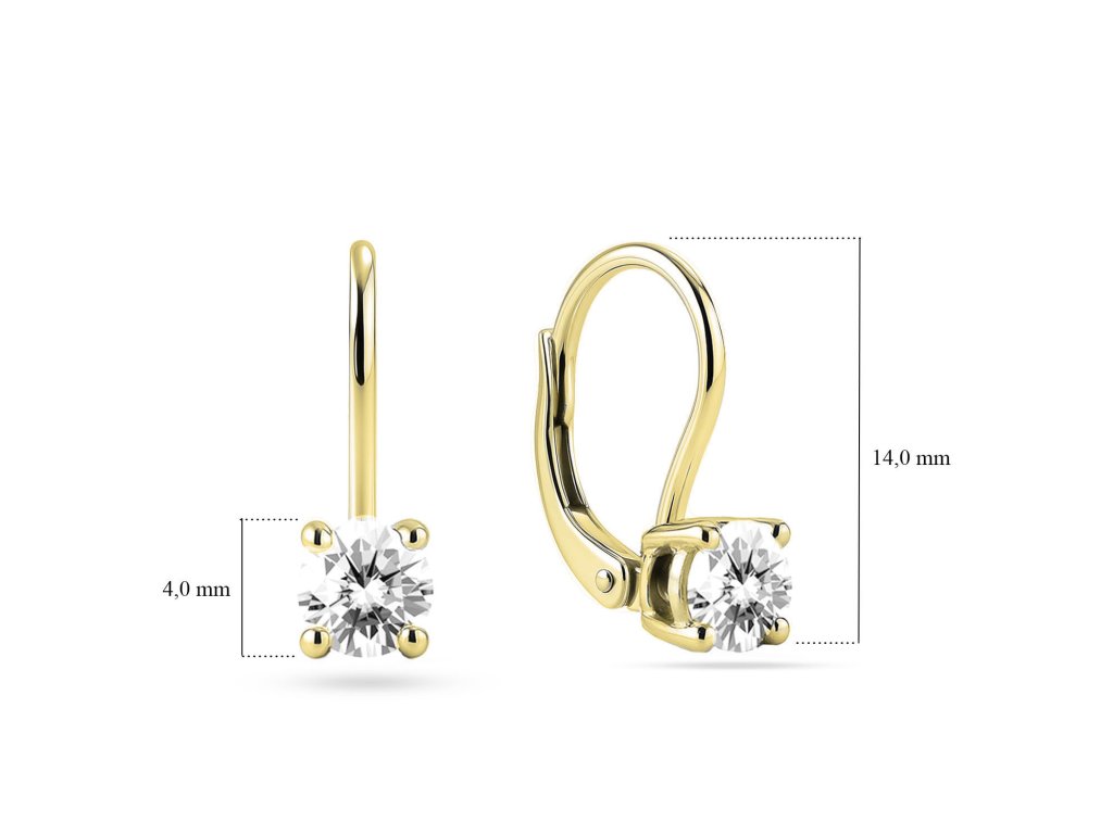 Náušnice EM 32515-40D jsou vyrobeny ze 14k žlutého zlata osazeny diamanty v nadčasovém designu. Náušnice jsou zdobeny kulatými diamanty v briliantovém brusu o velikosti 4,00 mm, které jsou jemné, zářivé a velmi elegantní. Skvěle se hodí jako dárek pro různé výjimečné příležitosti.