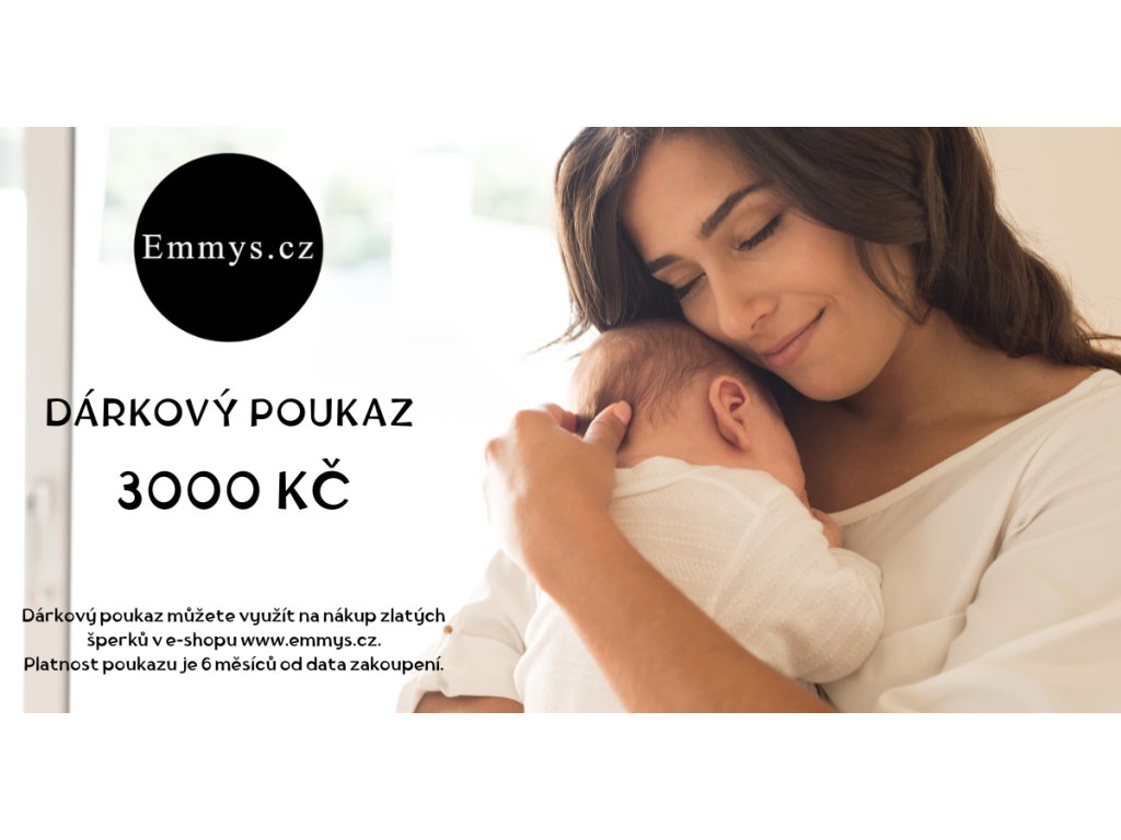 Dárkový poukaz v hodnotě 3000 Kč lze využít k nákupu šperků v e-shopu www.emmys.cz. Tento poukaz je platný 6 měsíců od data nákupu. Lze ho uhradit pouze kartou nebo bankovním převodem. Po zaplacení Vám bude poukaz odeslán na Vaši e-mailovou adresu, z které si ho můžete pohodlně vytisknout, spolu s jednorázovým kódem pro uplatnění slevy při nákupu zboží.