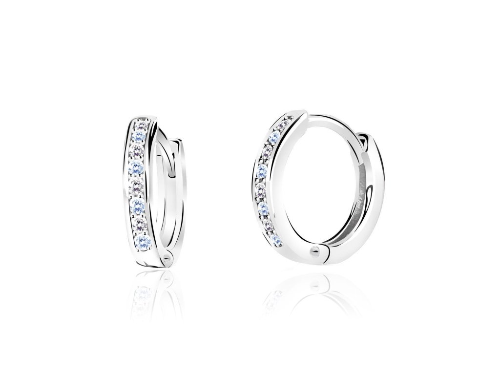 Dětské náušnice kroužky EM 32139 z bílého zlata s bílými a světle modrými kamínky