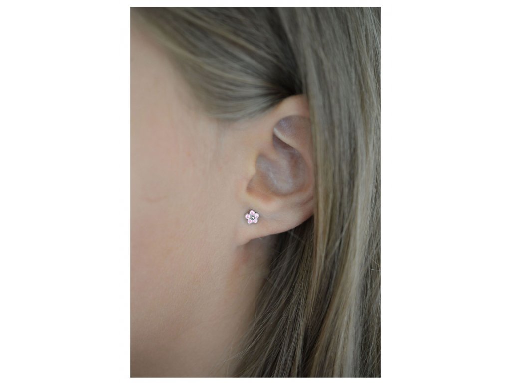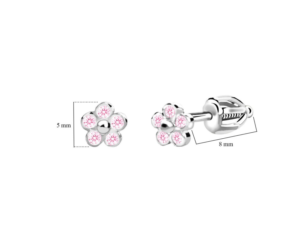 Pomněnkové náušnice EM 70549 z bílého zlata s růžovými kamínky, zapínání balónek