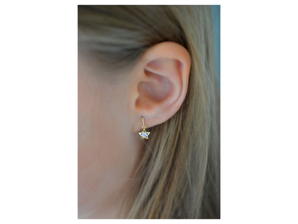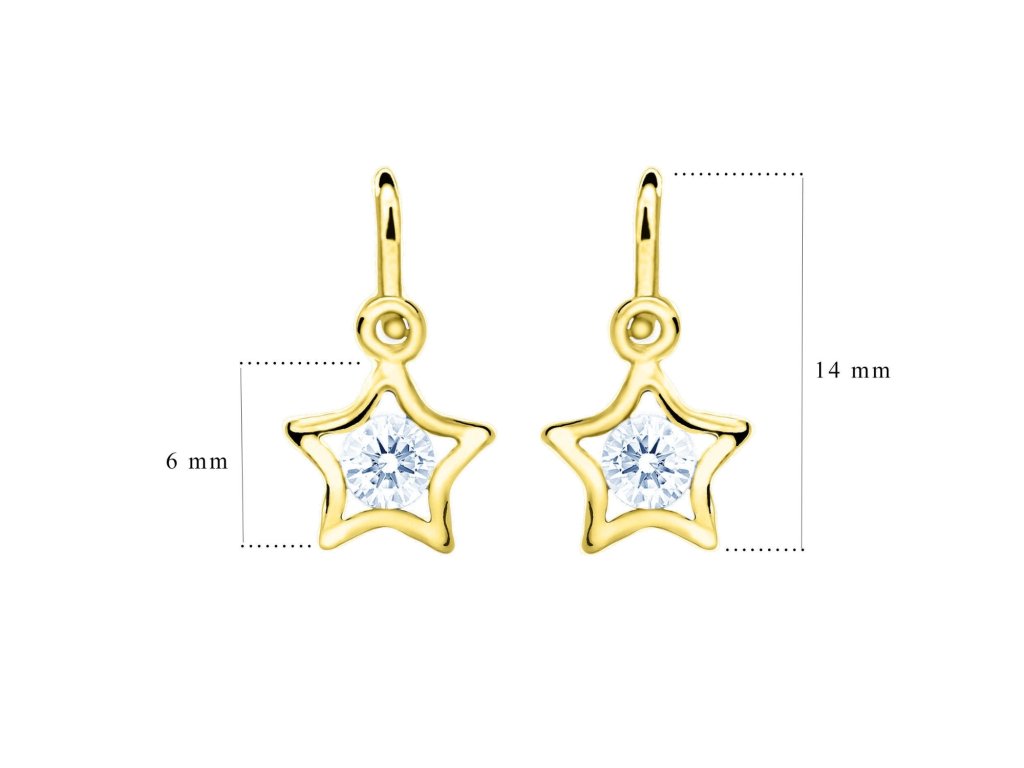 Náušnice hvězdičky EM 70387 ze žlutého zlata se světle modrými kamínky, zapínání brizura