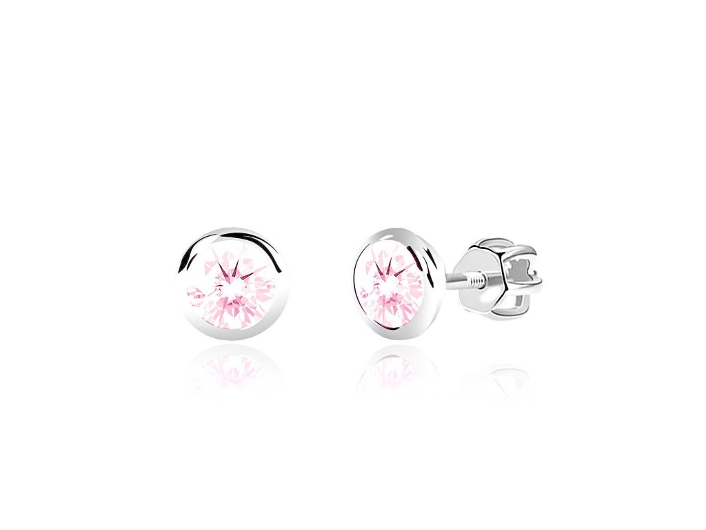 Kulaté náušnice EM 31302 z bílého zlata s růžovými kamínky, zapínání balónek