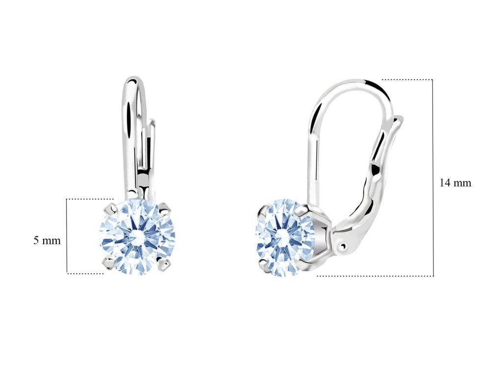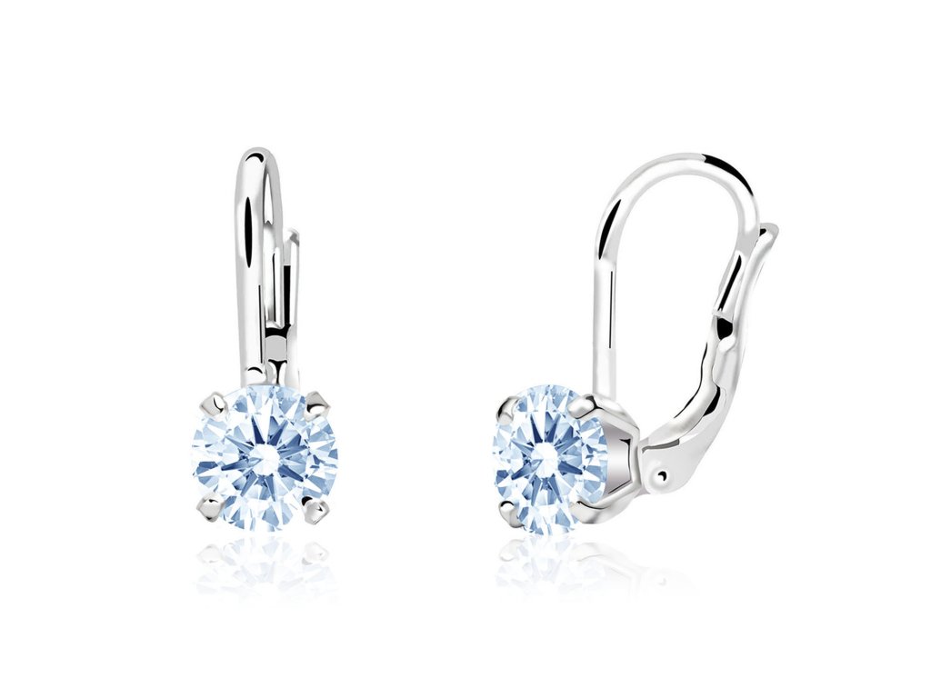 Dívčí náušničky se zapínáním na klapku jsou vyrobeny z bílého zlata se světle modrými zirkonovými kamínky. Zlaté náušnice jsou opatřeny puncovní značkou 585/1000 od státního puncovního úřadu. Tento typ zapínání je nejlepším výběrem pro holčičky, které už odrostly miminkovským náušničkám. Rozměry výrobku jsou detailně zobrazeny v produktové doplňující fotografii. Náušnice pro Vás vyrábíme ručně za použití tradičních metod. Náušnice Vám dopravíme v originální krabičce.