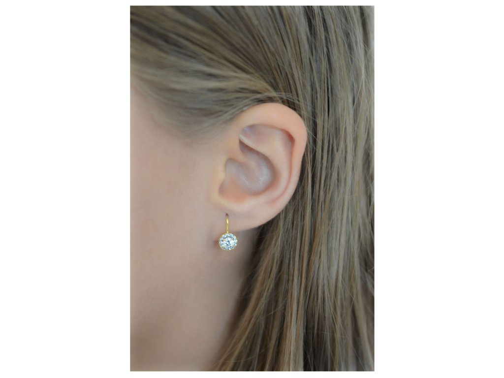 Kulaté náušnice EM 32039 ze žlutého zlata s bílými kamínky, zapínání klapka