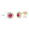 Kulaté náušnice EM 32039 ze žlutého zlata s červenými kamínky uprostřed a bílými okolo, zapínání balónek