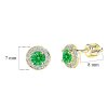 Kulaté náušnice EM 32039 ze žlutého zlata se zelenými kamínky uprostřed a bílými okolo, zapínání balónek